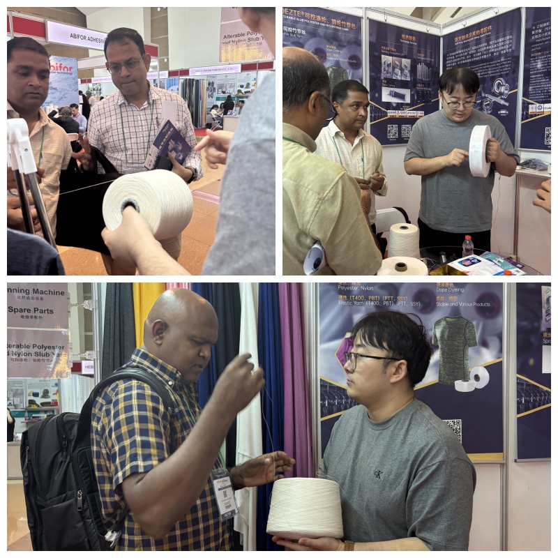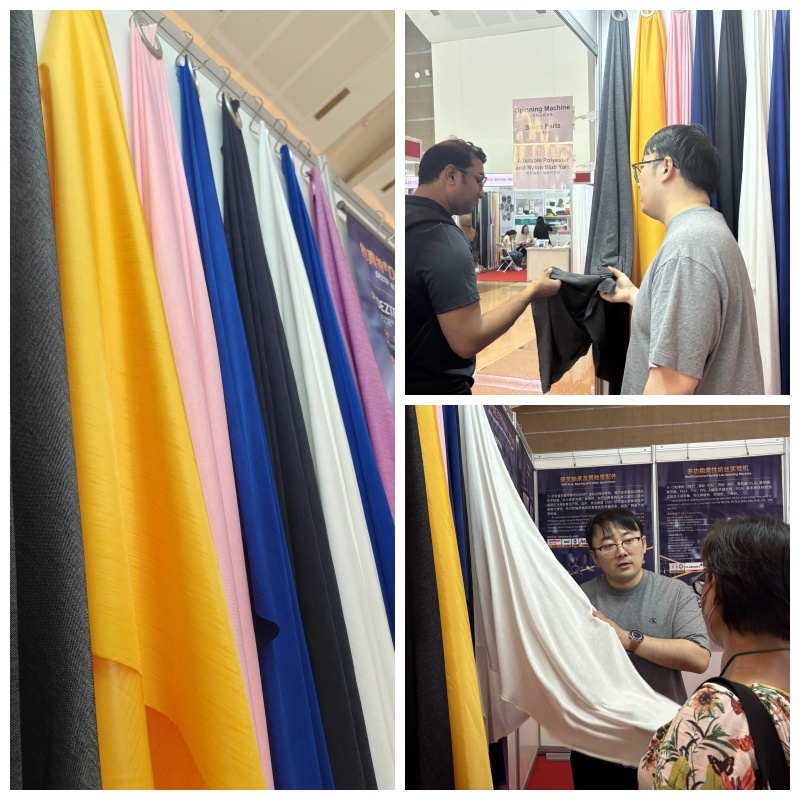 En esta exposición, Jiaxing Shengbang se centró en mostrar una serie de productos especiales, incluidos hilos flameados, hilos centrales de series de fantasía y telas de alta gama. Estos productos se han convertido en uno de los aspectos más destacados del sitio de exposición con su diseño único y excelente rendimiento.
